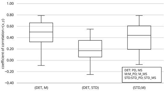 For the comparison between deterministic and stochastic solutions, a deterministic optimization is performed first. Afterwards, the generated deterministic solutions ( and ) are tested with stochastic values of the scenarios . , , , and are used as objective functions to evaluate the stochastic influences. The maximum number of generations is . The deterministic optimization aborts after generations with an unchanged objective value. experiments were performed. To evaluate the correlation, the Pearson correlation coefficient is calculated. For this purpose, the correlation between the deterministic solution and mean value of the stochastic solution, the correlation between the deterministic solution and standard deviation of the stochastic solution, and the correlation between the mean value and standard deviation of the stochastic solution are calculated. The results are shown in Figure 5 as a boxplot diagram and in Table 1 combined with the mean value and confidence interval .