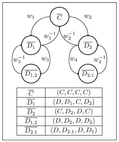 Figure 16 draws a state diagram of Figure 7’s CROSS gate constituting from 4 sub gates A–D; Figure 17, Figure 18, Figure 19 and Figure 20 show their configurations. It is automatic to check their correctness.