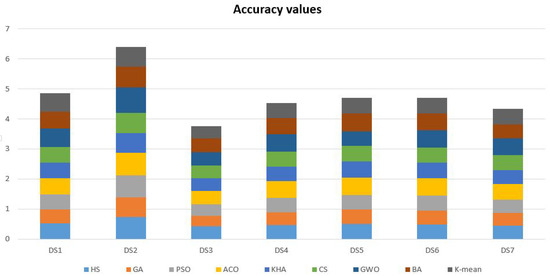 The accuracy test is applied to determine the correct documents selected to all groups in the provided dataset [98,99,100]. This measure is defined using Equation (6).
