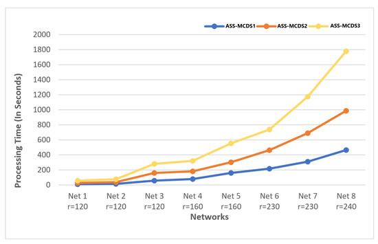 The average processing time of the ASS-MCDS with different values.