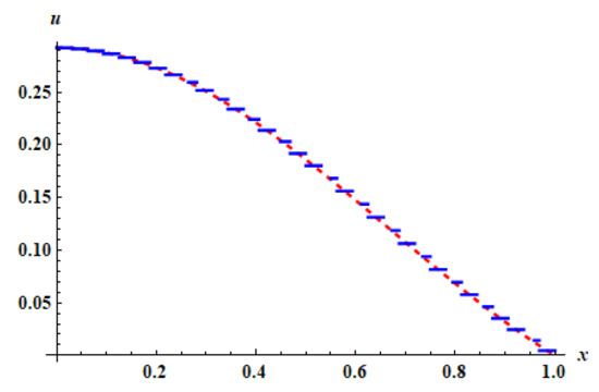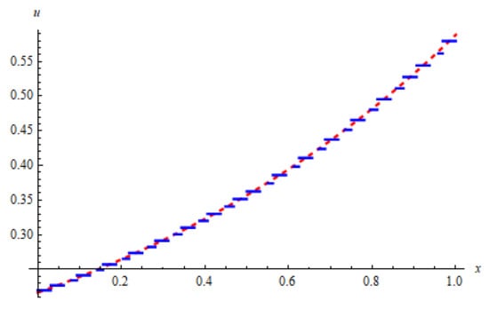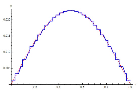 When we use the Haar wavelet method at , we discretize Equation (14) by