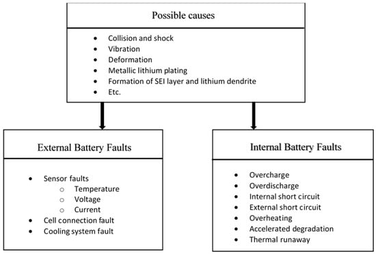 Internal and external Lithium-ion (Li-ion) battery faults and their causes.