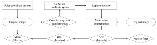 The final result was synthesized with the processed image and transformed into a polar coordinate system, shown in Figure 12. Oil film areas were calculated according to the image resolution and detection range in Table 2.