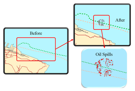 Oil, including crude, gasoline, bulk oil, and fuel, spills into marine environments during off-shore well production, oil refining, oil tanker transportation, and pipeline ruptures. According to the European Space Agency (ESA), the amount of oil spilled annually worldwide is estimated to be more than 4.5 million tons, and 80% of this is due to operative discharges [1]. This has become a major man-made threat to marine and coastal environments, with adverse long-term impacts on economics and biological health [2]. For example, a recent oil spill disaster has continued to pollute many of Brazil’s coastlines for months, with the catastrophe exhausting the resources of the government and communities [3,4]. Marine oil spills can diffuse extensively the sea surface within several hours, leading to very serious consequences [5]. Billions of dollars are spent preventing pollution, but risk cannot be completely eliminated [6]. Technologies that can detect and monitor oil spills are, therefore, very important for rapid emergency response and contamination control.