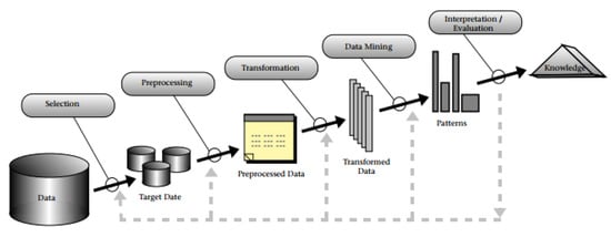 - Fayyad, U.M.; Piatetsky-Shapiro, G.; Smyth, P. From Data Mining to Knowledge Discovery in Databases. AI Mag. 1996, 17, 37–54. [Google Scholar]