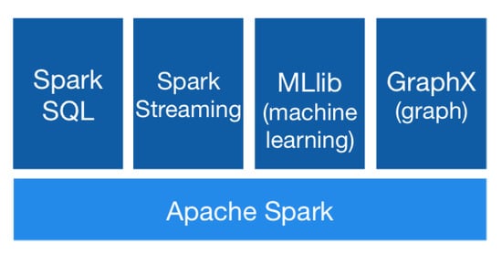 - Zaharia, M.; Xin, R.S.; Wendell, P.; Das, T.; Armbrust, M.; Dave, A.; Meng, X.; Rosen, J.; Venkataraman, S.; Franklin, M.J.; et al. Apache Spark: A Unified Engine for Big Data Processing. Comm. ACM 2016, 59, 56–65. [Google Scholar] [CrossRef]