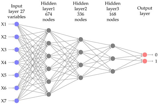 Table 3 shows the parameters of the architecture. Labels X1–X7 are informative only, and the input size is 27 variables.