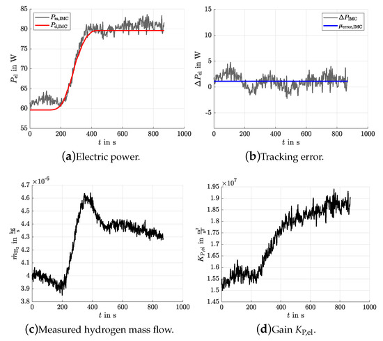 is illustrated. It is clearly visible that a large variation of the gain of several tens of percent along the time axis occurs, which was not yet modeled. This gain variation results from unavoidable changes of the internal temperature distribution in the SOFC stack module and from variations of the cathode gas temperature which is employed to keep the stack at a constant thermal operating point despite exothermal reaction enthalpies [12]. Despite this model uncertainty resulting from actually nonlinear dynamic phenomena, the PI controller and the IMC are able to follow the desired trajectory. These model uncertainties could be analyzed in future work. Therefore, an alternative concept is to estimate this gain online and to make use of it in a generalization of the proposed PI controller and IMC towards an adaptive control approach.