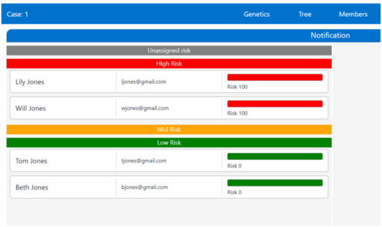 In order to fully understand how patients and consultants understand and interact with genetic health information, we built myKinMatters (Figure 1). myKinMatters is designed to explore the decision making processes around the sharing of genetic test results. Users can construct family trees using a simple form-based interface. These trees can then form the basis of discussion with clinicians as to who in the family tree information should be shared with. myKinMatters allows users to share test result information via email with members on the family tree. The system allows the anonymous sharing of test results, providing an email handshake system enabling identity confirmation before sharing.
