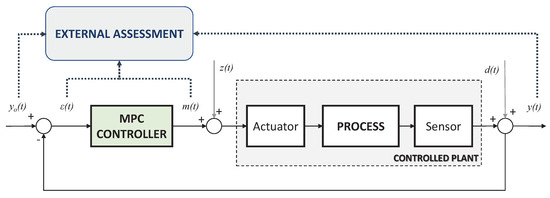 Many different structures of the predictive control have attracted the research interest in both analytical or nonlinear optimization configurations. Actually, MPC performance assessment seems to be a simple and straightforward task. Control rule includes internal performance index, thereby its value might allow measuring controller quality naturally. Such assessment might use any MPC internal variables, such as model information, predictions, or performance index values (see Figure 5). The advantages are clear. However, such an approach requires an access to the cost-function value, which is an internal variable and is not accessible in commercial applications. Vendors of APC solutions rarely allow insight into controller internal structure, perceiving it as an intellectual property. Additionally, interpretation of such a tailored cost-function requires specific and advanced knowledge. Consecutively, the assessment should use signals external to the MPC, such as Process Variable (PV), controller output, or control error signal (see Figure 6).