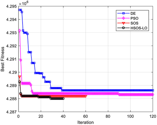 Comparative results of DE, PSO, SOS, and HSOS-LO for Case 3.