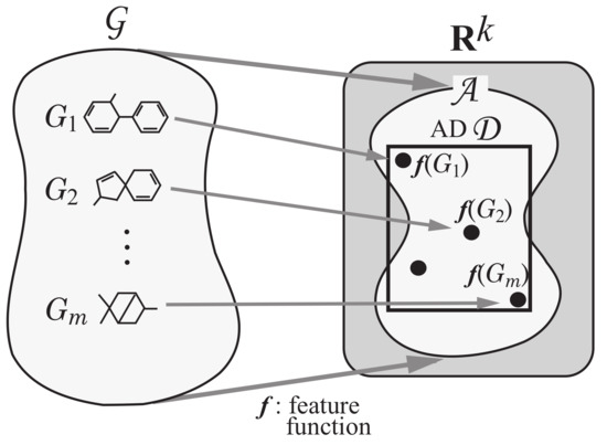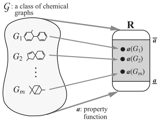 Step 1: Let be a set of chemical graphs. For a specified chemical property , choose a class of graphs such as acyclic graphs or monocyclic graphs. Prepare a data set such that the value of each chemical graph , is available. Set reals so that , . See Figure 3 for an illustration of Step 1.