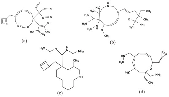 - Yamashita, K.; Masui, R.; Zhou, X.; Wang, C.; Shurbevski, A.; Nagamochi, H.; Akutsu, T. Enumerating chemical graphs with two disjoint cycles satisfying given path frequency specifications. arXiv 2020, arXiv:2004.08381. [Google Scholar]
