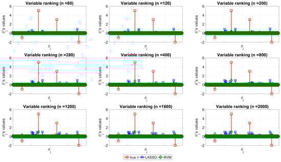 Basically, ref. [21] reformulates the relevance determination problem in the LASSO framework to use a highly efficient subset algorithm introduced in [22]. It represents one of the most important references for this paper but does not provide a comprehensive comparison between LASSO and RVM in terms of the diversity of datasets considered.