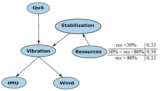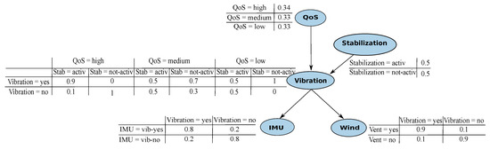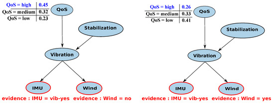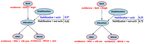The probability to activate is the stabilization to maintain a good QoS of the application depending on the evidence on IMU and wind.