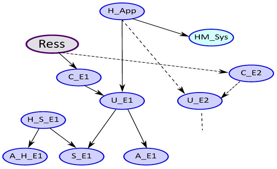 We can include in the previous FMEA-table the possible error mitigation for a specific type of error. This structure is especially useful to propose an alternative for an application. Therefore, this BN computes the health of the application () that represents . A novel column is added and corresponds to the possible mitigation solution for the error type . The new table is shown in Table 2. This table corresponds to the generic BN structure described in Figure 9 that is an extension of . The node HM_Sys represents the Health of the system and can be added in the BN structure as it can be considered as an potential error associated to the system malfunctioning.