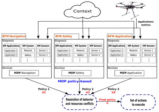 - Hireche, C.; Dezan, C.; Mocanu, S.; Heller, D.; Diguet, J.P. Context/Resource-Aware Mission Planning Based on BNs and Concurrent MDPs for Autonomous UAVs. Sensors 2018, 18, 4266. [Google Scholar] [CrossRef] [PubMed]