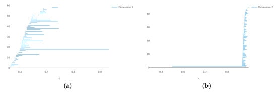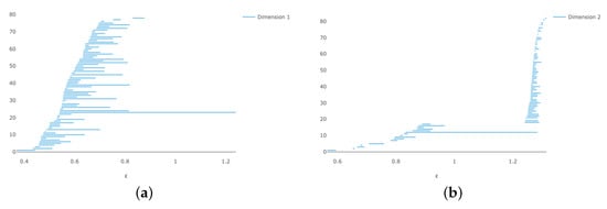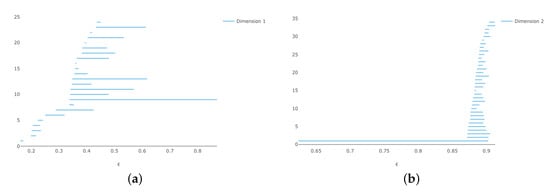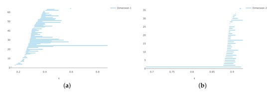 Many software packages support the calculation of Vietoris–Rips persistence on point clouds. In this paper, we use the Eirene package developed by Gregory Henselman []. Other popular programs include Ulrich Bauer’s Ripser [] and Vidit Nanda’s Perseus [].