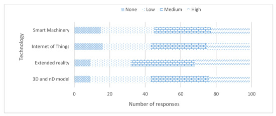 The results show that Chinese practitioners have a higher average technology utilization level in industrialized construction than those in the United States. This reflects that, currently, the practitioners in China pay more attention to the application of emerging technologies into the industrialized construction than the United States. Recent years have witnessed a prosperous development in the Chinese construction industry. Before 2008, the U.S. had the most top 225 international construction companies in the world. However, China has now surpassed the United States. This booming development brings the increase in the level of construction technologies [33,34]. Moreover, in order to comply with increasing requirements of urbanization and housing demand, the Chinese government is proactively promoting the industrialized construction strategies [34]. It has also been confirmed by previous researchers [35,36] that China is gradually leading in the off-site related research around the world. These could potentially explain why Chinese practitioners have a higher average technology utilization level.