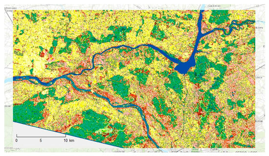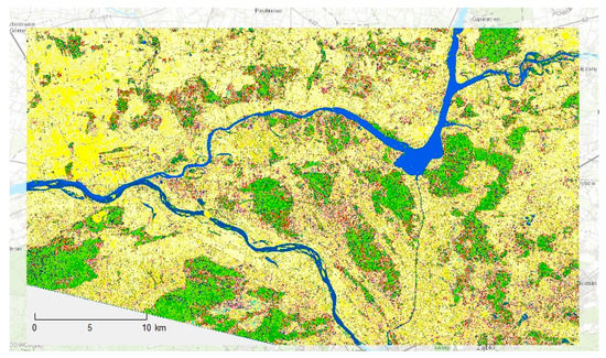 The initial automatic classification of resulting fused image was the final step of data fusion procedure using the RS algorithm. It seems that the main thread and aim of the research had been obtained. However, there are further steps related to precise identification of land use types, which use well-known generalization and supervised or unsupervised methods of classification. The idea of using a similar approach, in the form of another use of RS algorithm, was signalized in former studies [75]. The only condition was the accurate and detailed development of the image data fusion method using the RS algorithm prior to that. These next steps of classification appeared as another thread and the subject of separate studies (beyond the scope and aims of this paper).