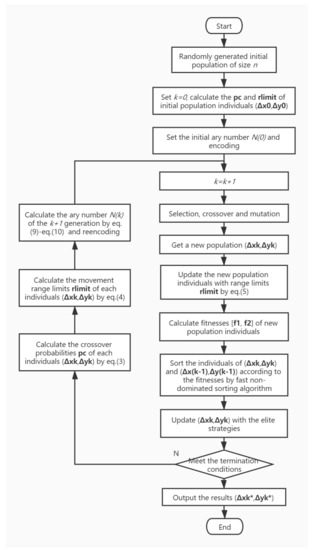 When the adaptive degressive ary number encoding is used in ADENSGA, a new improved algorithm called adaptive degressive ary number encoded directed evolved NSGA (AD-ADENSGA) is proposed. The process of AD-ADENSGA is shown in Figure 4.