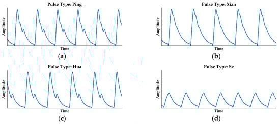 Pulse diagnosis is a non-invasive diagnostic method, and pulse wave has been proved to be beneficial to the diagnosis of cardiovascular diseases [,,,,]. In traditional Chinese medicine (TCM), doctors distinguish different pulse types according to a variety of parameters, including pulse waveform, depth, width, length, and frequency, then make the corresponding diagnosis []. Among these properties, pulse waveform is the most critical factor in classifying the pulse types, which is an essential task of pulse diagnosis devices. Therefore, researchers have widely studied pulse waveform classification in recent years [,,,,,,,,,].
