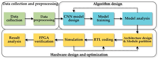 The system design flow includes data collection and preprocessing, algorithm design, and hardware design and optimization.