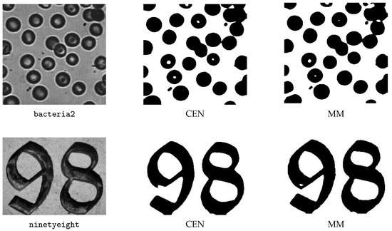 Segmentations of bacteria2 and ninetyeight by using CEN and MM.