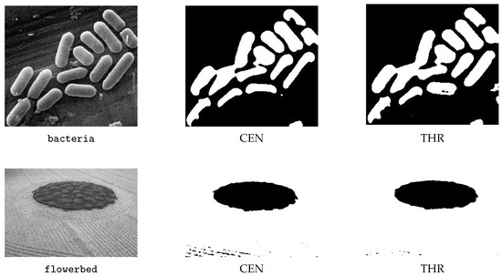 Segmentations of bacteria and flowerbed by using CEN and THR.