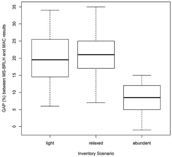 Gap between our best-found solutions (from MSBRLH) and the MAC’s results, for each inventory scenario.