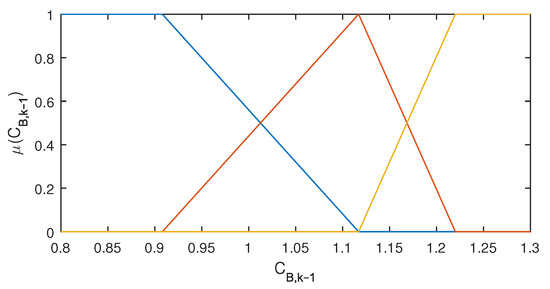 However, are not known yet, but the approach used in the free response generation can be applied here, i.e., the appropriate element of the future trajectory of the control signals can be used, namely: . Therefore, the premises used to obtain the firing strengths of the fuzzy rules will be as follows: