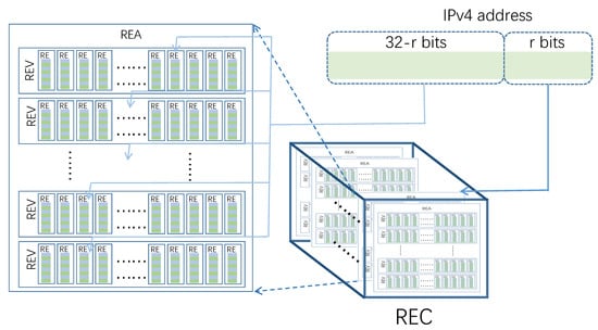 The basic element of REC is RE. Several RE constitutes a one-dimensional RE vector (REV); the set of REV constitutes a two-dimensional RE array (RE Array, REA). The three-dimensional REC can be regarded as a set of REA, which contains REA and r is a positive integer less than 32. Each REA of REC has the same structure, that is, the REA contains the same number of REV, and the associating REV contains the same number of RE. Let denote the number of REV contained in REA and denote the number of RE contained in the ith REV. Three indexes can be used to locate a RE in REC accurately.