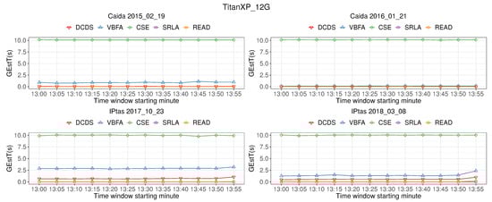 Figure 10 shows the time of candidate super point cardinality estimation (GEstT). The graph shows that GEstT of READ is close to DCDS, VBFA and SRLA algorithm, much lower than CSE, and GEstT of READ is not higher than 2.5 s. Therefore, READ can detect super points in real-time from 40 Gb/s high-speed network.