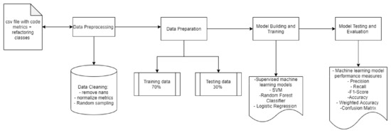 Metric-Based Model Building. After we split the data as training and test datasets. We built different supervised machine learning models to predict the refactoring class, as depicted in Figure 4. The steps we followed were the following steps: