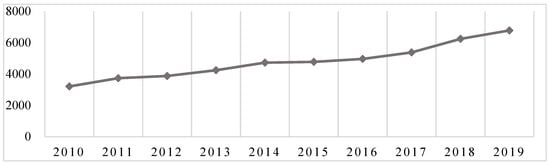 In the era of the service economy, service trade has become the core driving force to promote global business development. The computer information service industry is most closely associated with the fourth industrial revolution among all the service trade industries and stands at the core of the global value chain. It has become the engine of industrial development, and its scale is expanding rapidly. As shown in Figure 1, the world’s computer information service exports have been on a growth trend from 2010 to 2019. The export value has risen from 320.97 billion U.S. dollars to 678.22 billion U.S. dollars, an increase of 1.11 times in 10 years, with an average growth rate of about 8.65% per year, 1.72 times that of world service trade in the same period. The industry is developing very fast and has attracted more and more scholars’ attention. Therefore, in the critical period of global economic transformation and development, it is of immense importance to analyze the factors that affect the computer information service industry’s international competitiveness and build a prediction model from the perspective of high-quality development. It helps to adapt to the needs of the global economic servicing and the fourth industrial revolution and provides suggestions for accelerating the development of the industry.