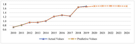 Actual and predictive values of international competitiveness of China’s computer information service industry.