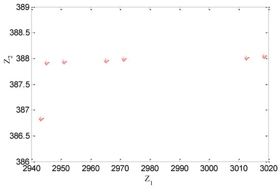 Based on the rescue route set obtained by the first stage, the NSGA-II algorithm is used to determine the scheduling of rescue resources for each rescue center in the second stage. The size of population is 20, the maximum number of iterations is 100, the crossover probability is and the mutation probability is . Similarly, the algorithm is executed 10 times in this stage, with an average runtime of about 5 s. The Pareto solutions are shown in Figure 8. In the obtained Pareto solution set, two schemes with the minimum expected total travel time (Scheme 1) and the maximum total reliability (Scheme 7) are selected for analysis, and the results of rescue resource scheduling for the two schemes are shown in Table 12. The object values of Scheme 1 are 2943 and 386.84, and the object values of Scheme 7 are 3018.5 and 388.05. Compared with Scheme 1, the reliability of Scheme 7 is improved, but the total expected travel time increased. Rescue resource 1 of Scheme 7 needs to dispatch resources from three centers due to the capacity limitation of rescue center 4, while Scheme 1 only needs to dispatch resources from two centers.