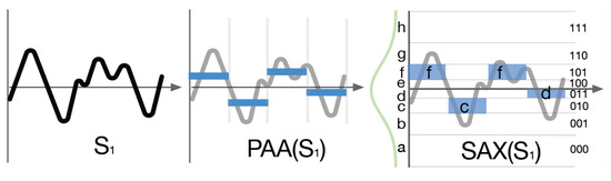 - Lin, J.; Keogh, E.; Wei, L.; Lonardi, S. Experiencing SAX: A novel symbolic representation of time series. Data Min. Knowl. Discov. 2007, 15, 107–144. [Google Scholar] [CrossRef] [Green Version]