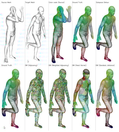- Mémoli, F. On the use of Gromov-Hausdorff Distances for Shape Comparison. In Proceedings of the 4th Symposium on Point Based Graphics, PBG@Eurographics 2007, Prague, Czech Republic, 2–3 September 2007; Botsch, M., Pajarola, R., Chen, B., Zwicker, M., Eds.; Eurographics Association: Switzerland, Geneve, 2007; pp. 81–90. [Google Scholar] [CrossRef]