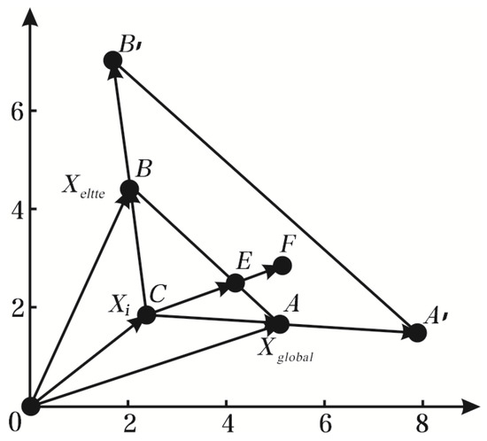- means is the worst solution, and is the best one. The algorithm should search in the opposite direction to find the minimum. is the midpoint of , is on the extension line of , and is called the reflection point of with respect to :where is the reflection coefficient, which equals 1 as usual. The geometric relationship is shown in Figure 2: