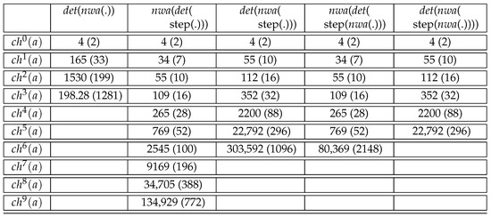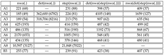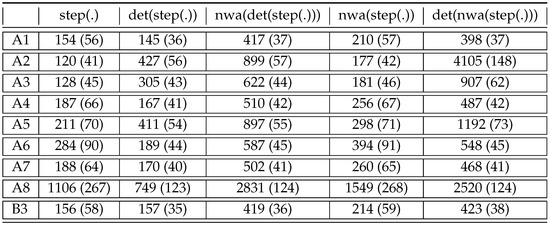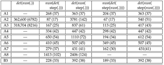 In the final column, we apply the compiler from s to which preserves determinism. For , this results in a of size 1413 and 102 states. This is better than the previous results, in particular with respect to the number of states.