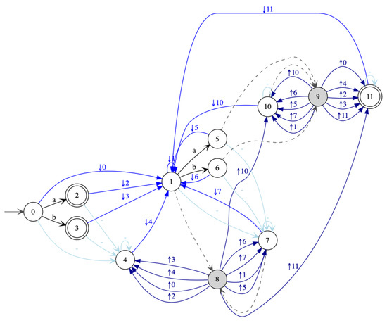 - Chervet, P.; Walukiewicz, I. Minimizing Variants of Visibly Pushdown Automata. In Mathematical Foundations of Computer Science 2007; Kučera, L., Kučera, A., Eds.; Springer: Berlin/Heidelberg, Germany, 2007; pp. 135–146. [Google Scholar]