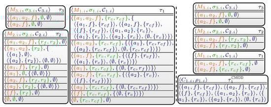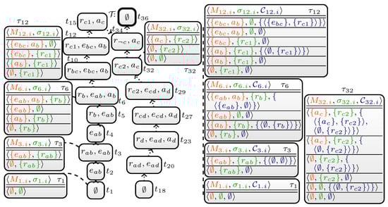 - For every node in the tree decomposition (in a bottom-up traversal), run an algorithm , which we call table algorithm, and compute a “table” , which is a set of tuples (or rows for short). Intuitively, algorithm transforms tables of child nodes of t to the current node, and solves a “local problem” using bag-program . The algorithm thereby computes (i) sets of atoms called (local) witness sets and (ii) for each local witness set M subsets of M called counter-witness sets [], and directly follows the definition of answer sets being (i) models of P and (ii) subset minimal with respect to .