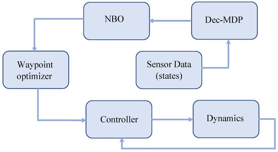 The rest of the paper is organized as follows. Section 2 provides the problem specification and objectives. We also formulate the problem using decentralized Markov decision process in Section 2 followed by the discussion on the NBO approach in Section 3. UAV motion model and dynamics are provided in Section 4. In Section 5, we discuss simulation results to evaluate the performance of our method.