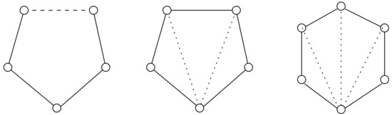 - Let be the leftmost chord of . If the cycle corresponds to the cycle in Item . When , consider the subgraph induced by the vertices in the cycle . The induced paths and provide the following lower bound for :