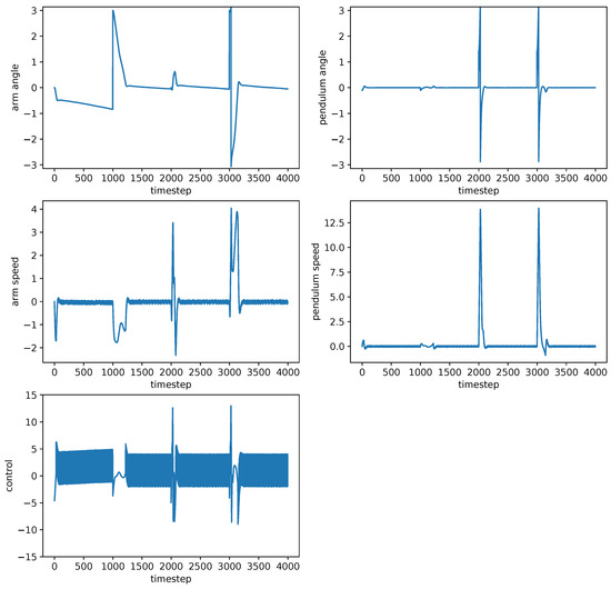 • Assigning random weights: every connection is mutated with a probability of 1 / N u m b e r O f C o n n e c t i o n s the connection receives either weight, chosen from n o r m r a n d ( 0 , 0.1 ) or n o r m r a n d ( 1 , 0.1 ) . Otherwise, the current value of the weight is used as a mean value to generate new as follows: w = n o r m r a n d ( w , 0.01 ) , where w is the current weight value. With probability of 1 / N u m b e r O f C o n n e c t i o n s each weight is either activated or deactivated.
