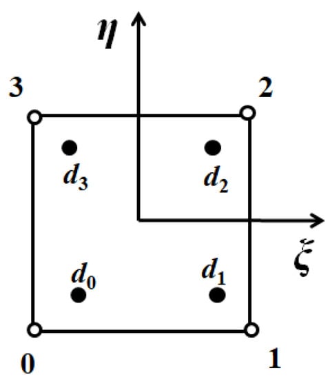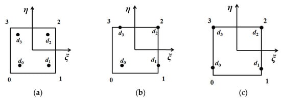 Since the interpolation points in partially discontinuous elements are the element nodes after inward shifting, the shape function is different from the standard shape function . As shown in Figure 3, dk is the position of node k after moving inside the element.