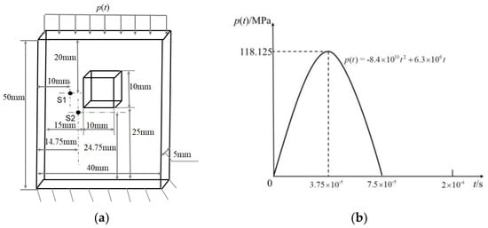 The geometric model and the boundary conditions of the plate: (a) geometric model; (b) load curve.