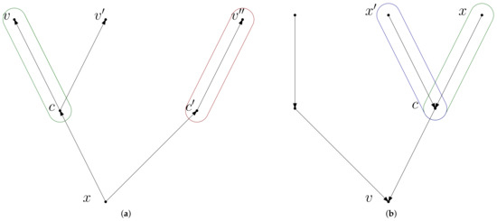 In our lower bound proof for the lightheaded grid, we identified pairs such that , making use of a concrete (but arbitrary) CH (or HL) for the lightheaded grid to actually identify those pairs . We cannot do this for a given instance of a road network, since we would have to consider all possible CH/HL constructions. Therefore, instead of pairs let us now try to identify witness triples where c is again a node on the (directed) shortest path from x to v. The intuition for is the following: On the shortest path , some node of the suffix of must be in the forward search space of x, or some node on the prefix must be in the backward search space of v. This intuition mimics the proof idea in the previous section but also allowing for directed graphs and leaving the choice c open.
