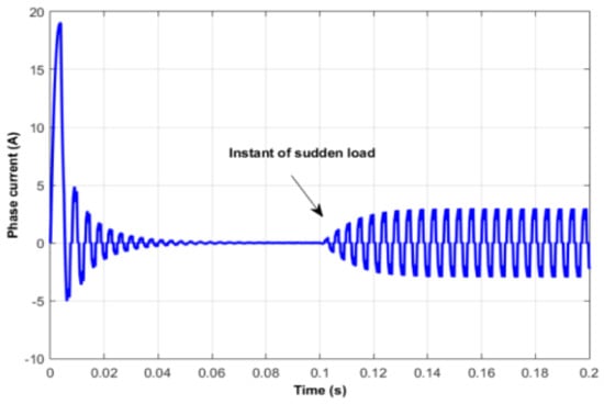 Figure 3 shows the corresponding phase current of the BLDC motor. Usually, the starting current of the BLDC motor is very high and decreases to zero in the case of no-load. it provides this fact where the starting current reaches 18 Ampere and decays to zero at stabilizes the rotor speed. Besides, it can noted that the phase current will be increased at time 0.1 s to ±2.5 A due to the sudden load.